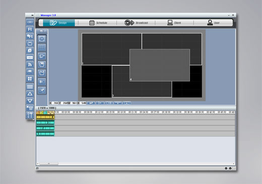 Try this simple UI of Digital Signage program. It can be used at any place in the world because multi-language is supported, screen division is supported for various formats, and you can manage multiple displays with one SW. Try it now.